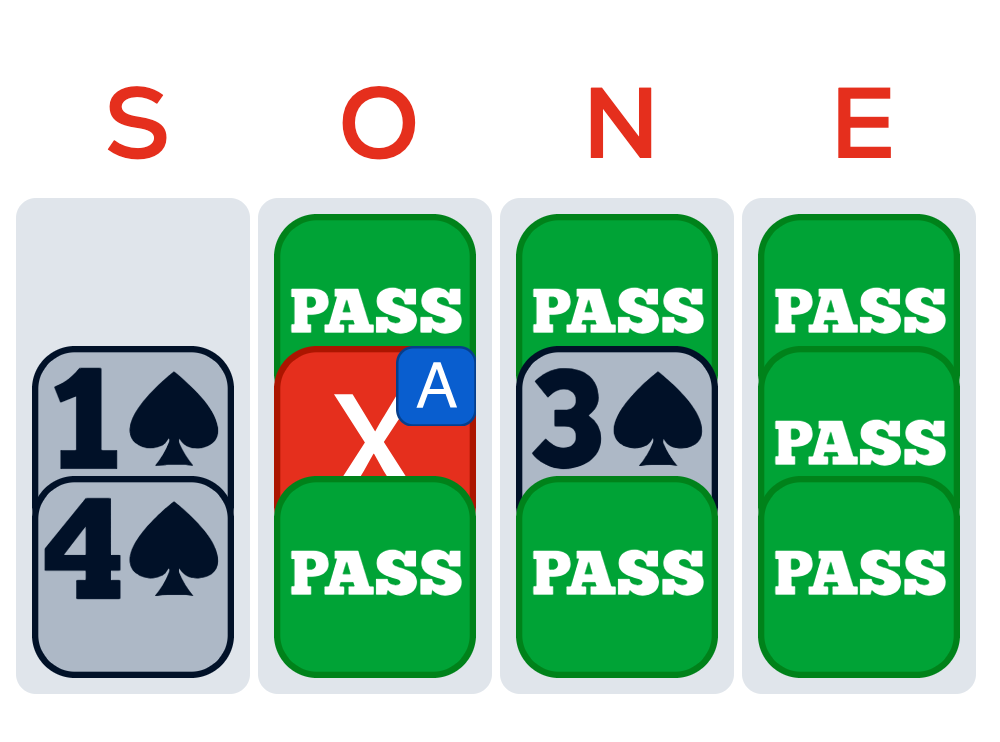 Faire 4♠ rapportait 98%. Même s’arrêter à 3♠ et réaliser ce contrat rapportait 82,3%. Une large majorité de joueurs a chuté à 4♠ pour un médiocre 39%.