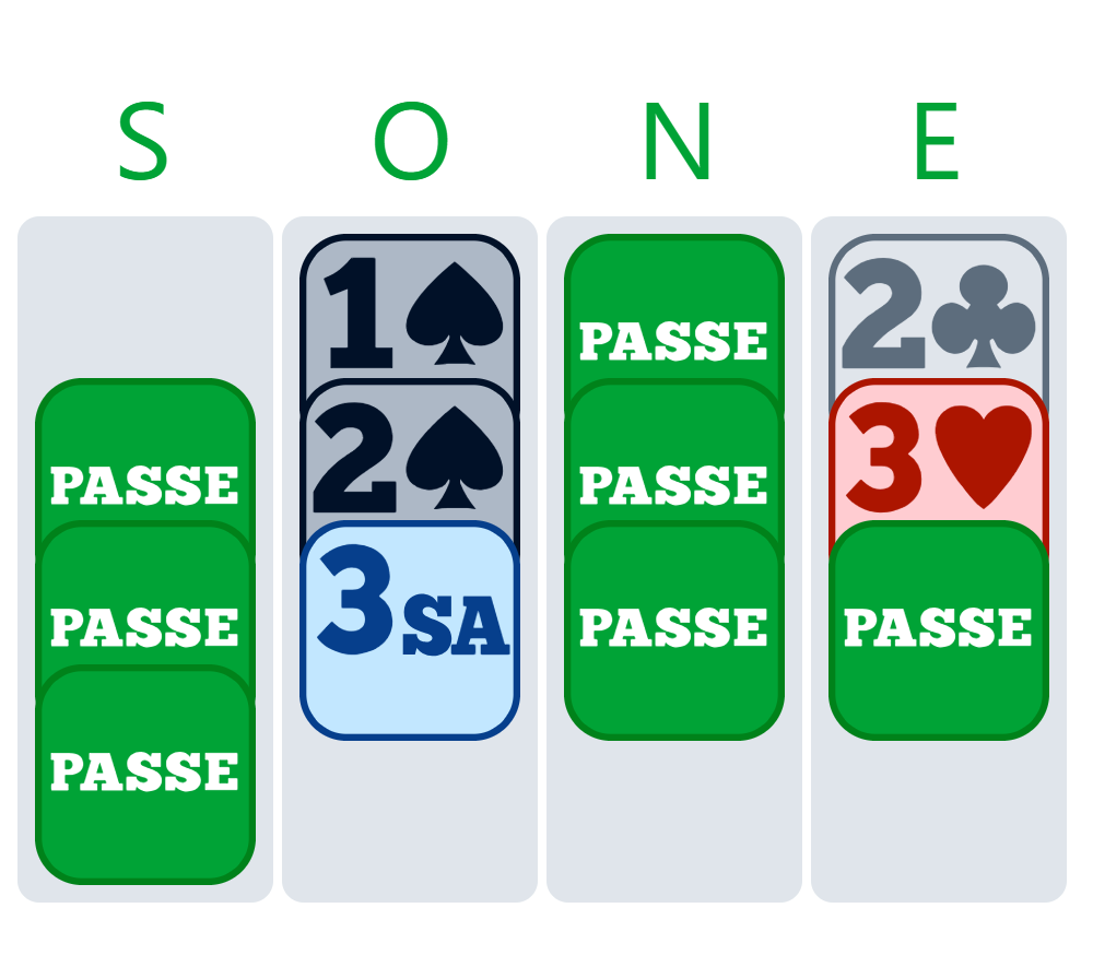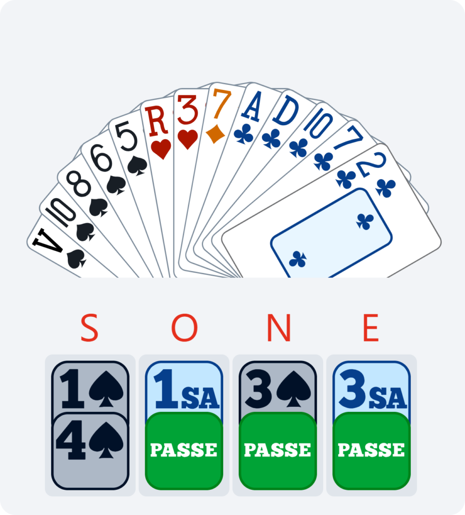 Quand elle passe, ce Passe est forcing et dit « A toi de choisir ». Elle a donc de bonnes nouvelles pour le chelem mais ne peut pas prendre la décision toute seule.