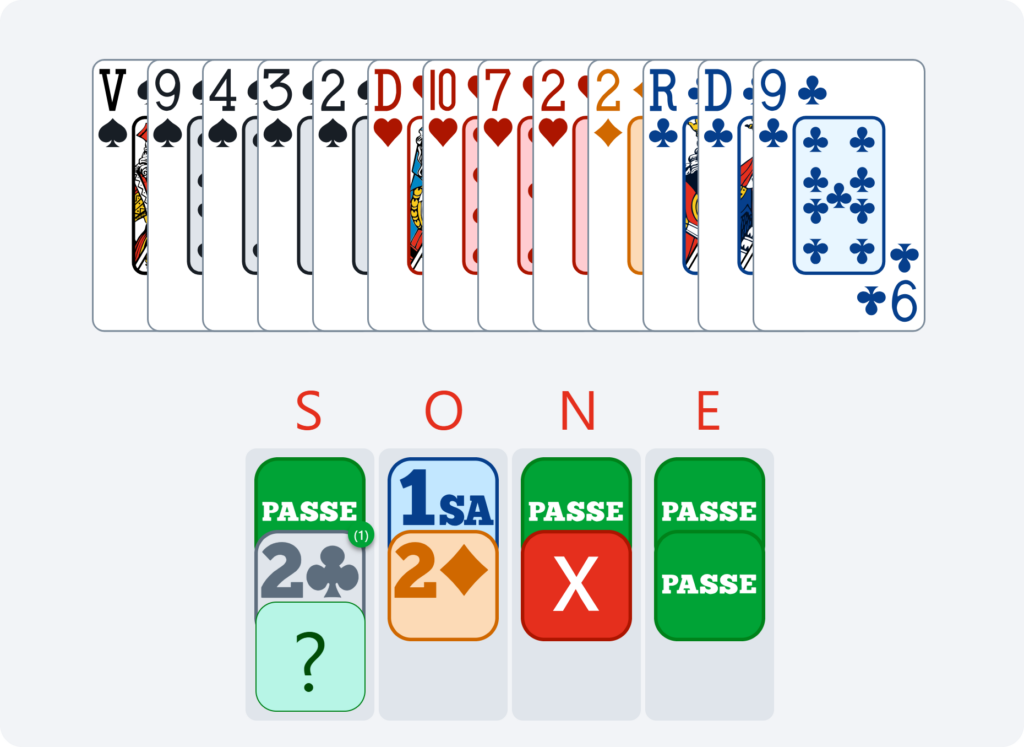 Ah ! En fait la situation n’est pas forcing, Sud a annoncé son jeu et va passer ensuite sur 2K la plupart du temps (ça sent le misfit)
