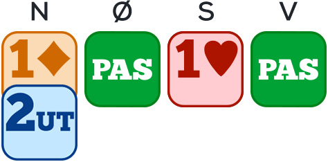 Springstøtte: 4 kort og 15-17 HP (17-19 fordelingspoint + HP) og korthed, da der ikke blev åbnet 1NT.
