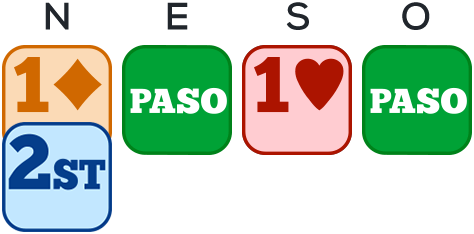 Para declarar el carácter regular de su mano y la ausencia de ligada de 4 cartas, el abridor elige una redeclaración a ST.