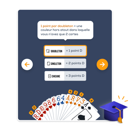 De plus, le module d’initiation au bridge est enrichi d’un dictionnaire du bridge qui vous permettra de connaître le vocabulaire et jargon du bridge sur le bout des doigts.