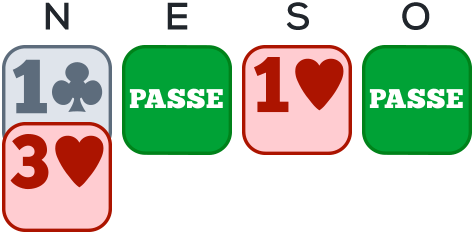Sans 4 cartes dans la majeure annoncée par son partenaire, l’ouvreur est tenu d’annoncer lui-même une majeure au palier de 1, s’il en possède 4.