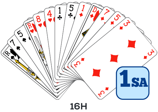 Cela montre, comme à l’ouverture, 15-17H et un jeu régulier. La seule différence est qu’il faut obligatoirement un arrêt dans la couleur adverse.