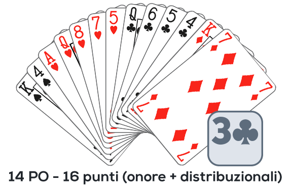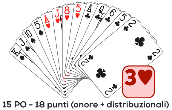 Rialzo semplice: 4 carte e 12-14 punti onore (12-16 punti onore + distribuzionali).