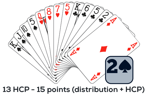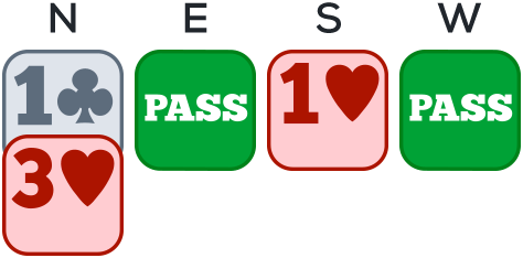 Jump raise: 4 cards and 15-17 HCP (17-19 distribution points + HCP) and shortage for not having opened 1NT.