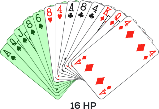 De høyeste kortene i hver av de fire fargene (spar, hjerter, ruter og kløver) kalles honnører.