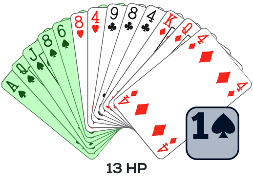 Hvis makkeren din har vist 5 korts Hjerter, kan du legge til 2 poeng for singel spar med hånden nedenfor: