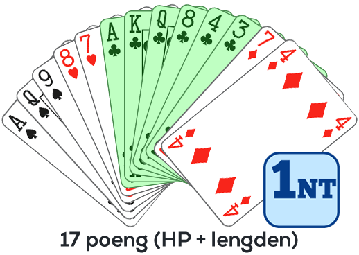 Hvis giveren har 11 HP eller færre, sier han "pass" og det er neste spiller som skal melde. En mulig åpningsmelding er 1NT, som normalt skal vise 15-17 HP og en jevn (balansert) hånd (minst 2 kort i hver av fargene).