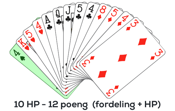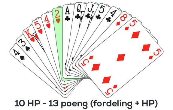 Hvis din makker har vist 5 korts Hjerter, kan du legge til 1 poeng for den 9. trumfen med hånden nedenfor (pluss 1 poeng for hver dobbelton):