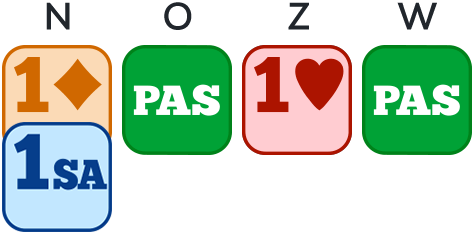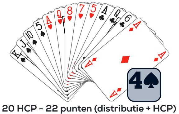 Opgelet: Het bereik van 15-17 HCP wordt niet besproken omdat de openaar anders 1SA zou hebben geopend.