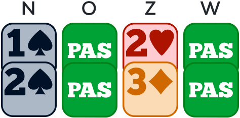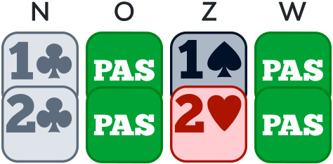 Op andere momenten zal je een honneur moeten opofferen om een kleur te deblokkeren: