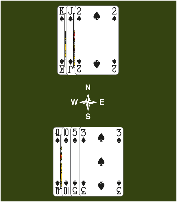 Twój partner wistuje Królem . Przeciwnik przepuszcza I przepuszcza znowu partnera Damę Pik. W trzeciej rundzie , powinieneś zrzucić. Zrzucenie małego lub jest wykluczone, powinieneś zrzucić małego .