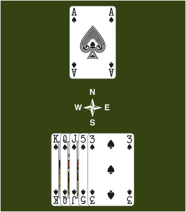 Aby wziąć swoje 3 lewy bez problemów komunikacyjnych, zagraj najpierw Króla, potem Asa i Damę.
