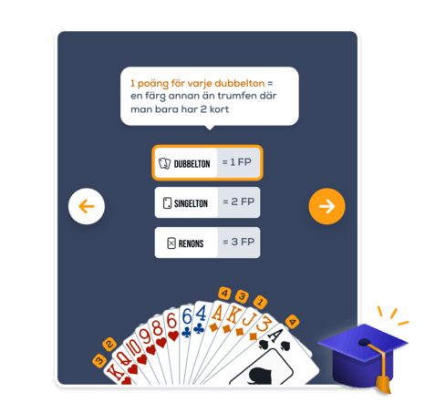Du kanske inte är bekant med bridgeterminologin just nu, men oroa dig inte. Våra bridgeexperter har jobbat hårt för att ge dig ett interaktivt, enkelt och intuitivt redskap så att du kan spela dina första bridgetävlingar utan problem!