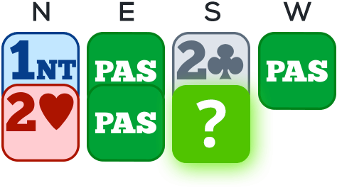 Her iki majörde de 4 kart varken iki farklı çözüm bulunuyor: 2NT diye cevap vererek 4 tane ve 4 tane gösterebilirsin (bu Funbridge’de varsayılan çözümdür) veya 2 diye cevap vererek körlerle başlayabilirsin, (başlangıç modülünde bu çözüm öneriliyor).