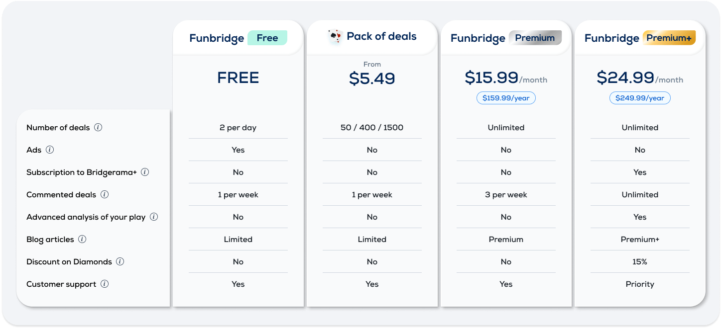 It is possible to play on Funbridge without spending any money! We also offer several subscription plans: